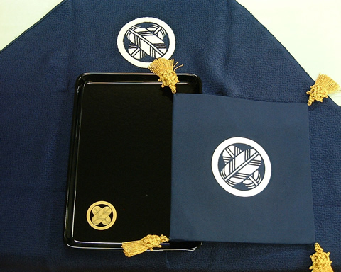 切手盆・ふくさ(富久紗)・風呂敷すべてに家紋・お名前が入ります。