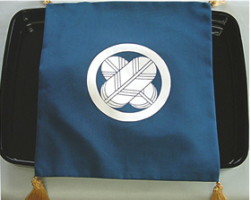 広蓋・ふくさ(富久紗)・風呂敷(白山紬)に、家紋・お名前が入ります。