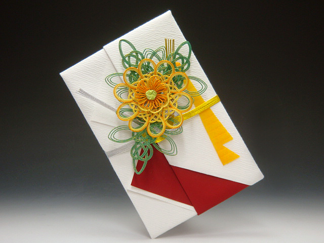 | 材料 | 手漉き檀紙 顔料染め赤紙、京水引 本熨斗 |